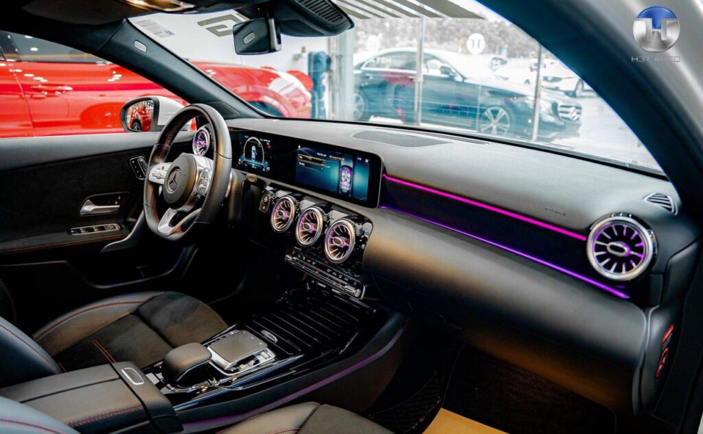 - Mercedes-AMG A 35 có nội thất sang trọng hơn với hệ thống MBUX, màn hình kép 10,25 inch, và hệ thống âm thanh Burmester cao cấp.