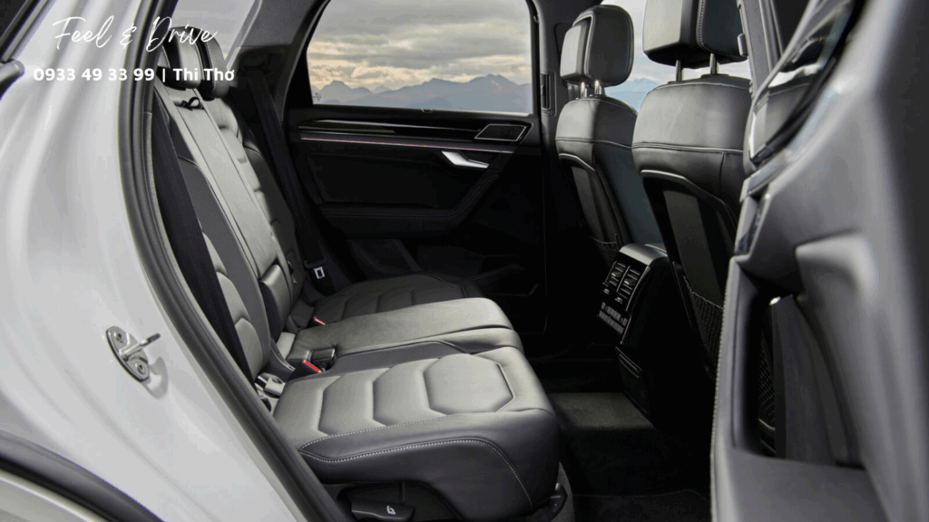 Kích thước tổng thể của Touareg Highline 2025 (dài 4,889 mm, rộng 1,984 mm, cao 1,757 mm, chiều dài cơ sở 2,888 mm) mang lại không gian rộng rãi và sự hiện diện nổi bật trên đường.