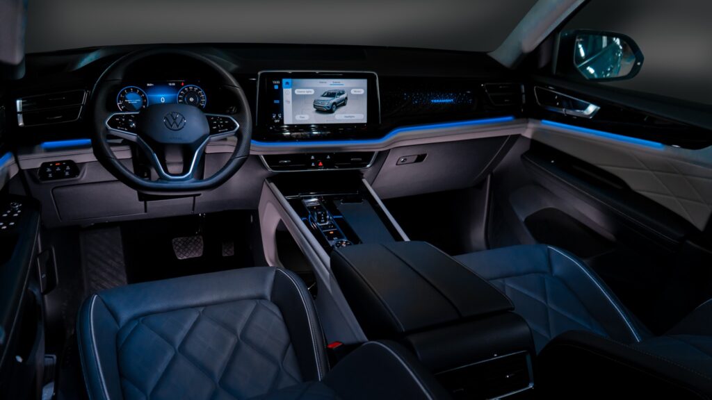 Ngược lại, Volkswagen President 6 chỗ lại ghi điểm mạnh mẽ ở thiết kế bề thế và bố trí 6 chỗ dạng thương gia (captain seats). Hàng ghế thứ hai tách biệt, có lối đi riêng vào hàng ghế thứ ba, đem đến cảm giác riêng tư và đẳng cấp. Khoang nội thất bọc da cao cấp, cửa sổ trời toàn cảnh, hệ thống giải trí hiện đại cùng đèn viền nội thất tinh tế giúp hành khách tận hưởng trọn vẹn hành trình dài.