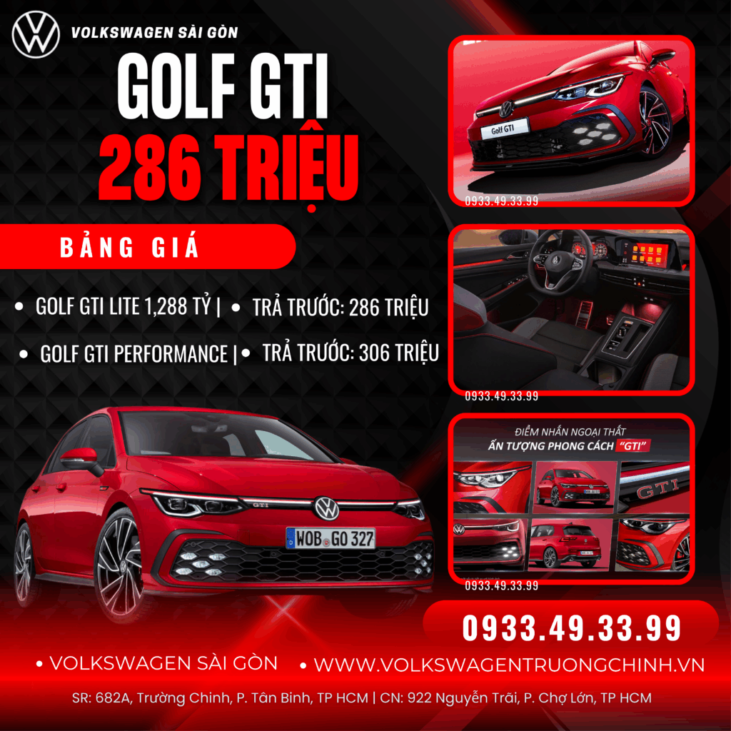 👉giá xe VW Golf GTI Lite: 1,288 tỷ. Trả trước 286 triệu