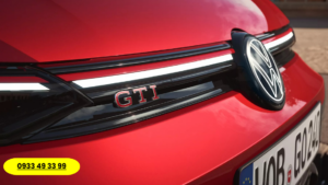 Đường viền đỏ đặc trưng GTI chạy ngang đầu xe và logo GTI nổi bật.